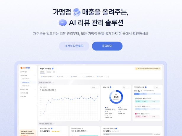 ๋๊ธ๋ชฝBiz๋ ๋ฆฌ๋ทฐ ๊ด๋ฆฌ๋ฅผ ์๋ํํด์ฃผ๋ ์๋น์ค์์. ๋ฐฐ๋ฌ์ฑ, ๋ค์ด๋ฒ ํ๋ ์ด์ค ๋ฑ์ ๋ฆฌ๋ทฐ์ AI๊ฐ ์ํ๋ ๋งํฌ๋ก ์๋ ๋๊ธ์ ์์ฑํด์ฃผ๊ณ , ๋ถ๋ง์กฑ ๋ฆฌ๋ทฐ ๋ฑ๋ก ์ ์๋ฆผํก์ผ๋ก ์ ์ฃผ์๊ฒ ์๋ ค์ค๋๋ค. ์ด๋ฌํ ๋ฆฌ๋ทฐ ๋ฐ์ดํฐ๋ฅผ ๋ณธ์ฌ ๋จ์๋ก ๋ชจ์ ๋์๋ณด๋๋ก ๋ณผ ์ ์๊ณ , CRM ๊ธฐ๋ฅ์ ํ์ฌํด ์ ๋ฉ๋ด๋ ์ด๋ฒคํธ ์์ ๋ฑ๋ ์ ํ ์ ์์ด์.